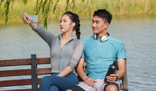 图片标题: 青年情侣在户外跑步