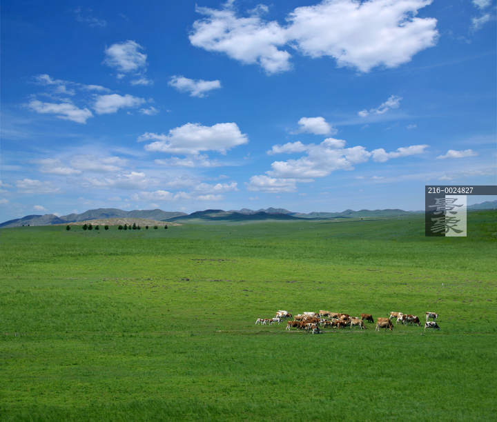 图片标题: 内蒙古科尔沁右翼前旗草原上的牛群羊群