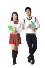 图片标题: 青春活力的青年学生在黑板上写字