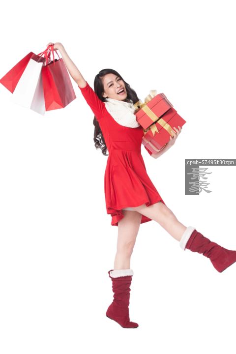 图片标题: 青年女人抱着圣诞礼物