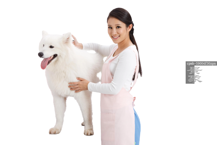 图片标题: 青年女人给宠物狗梳理毛发