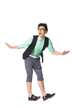 图片标题: 跳到半空中的青年男人
