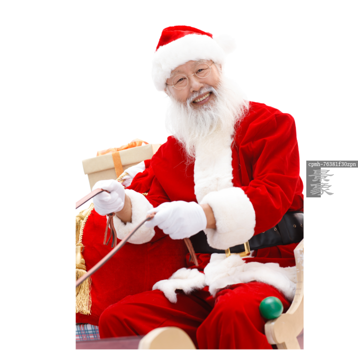 图片标题: 穿着圣诞服的老人坐在雪橇上