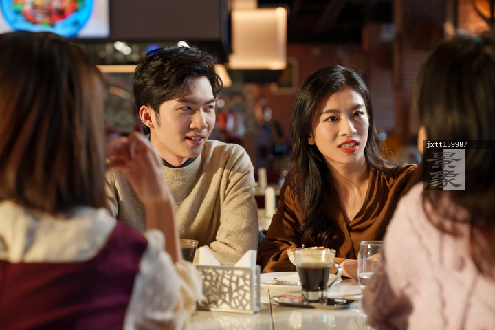 图片标题: 青年朋友在咖啡厅