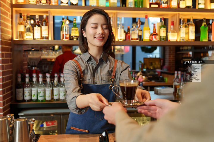 图片标题: 咖啡店服务员拿着咖啡