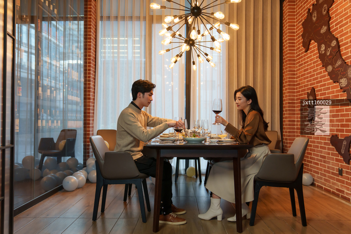 图片标题: 青年情侣在餐厅用餐