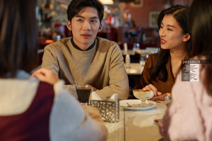 图片标题: 青年朋友在咖啡厅