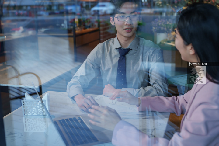 图片标题:     青年白领在餐厅里讨论工作