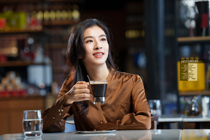 图片标题: 咖啡厅里的青年女人