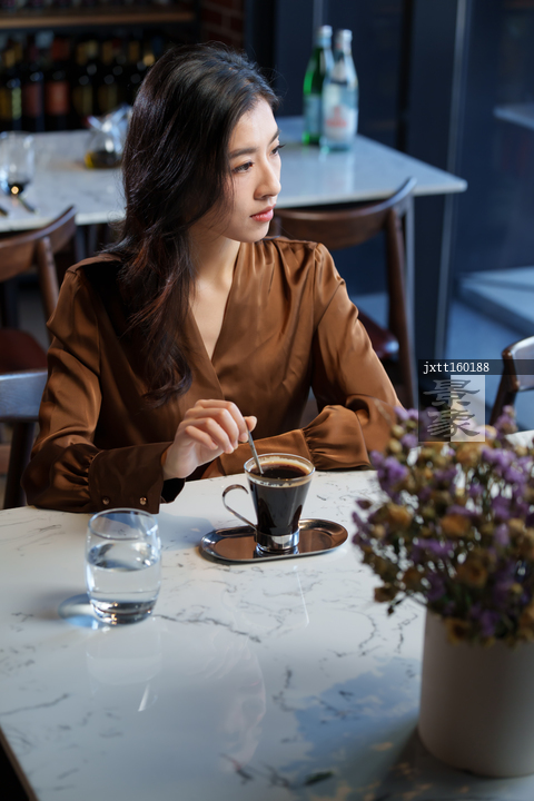 图片标题: 咖啡厅里的青年女人