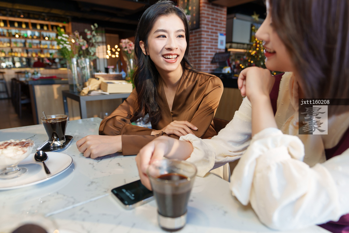 图片标题: 咖啡店里的快乐闺蜜