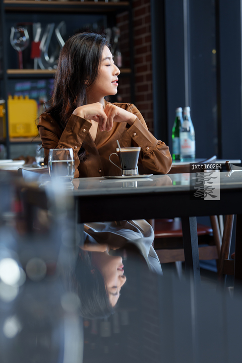 图片标题: 咖啡厅里的青年女人