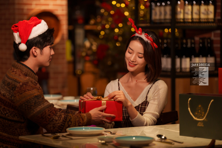 图片标题: 年轻男人给女朋友送圣诞礼物