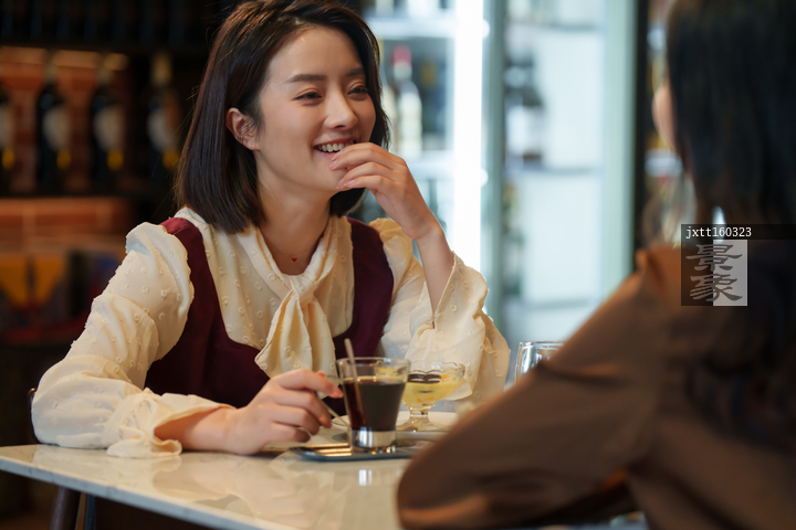图片标题: 咖啡店里的快乐闺蜜