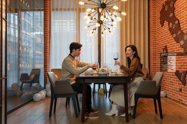 图片标题:     青年情侣在餐厅用餐