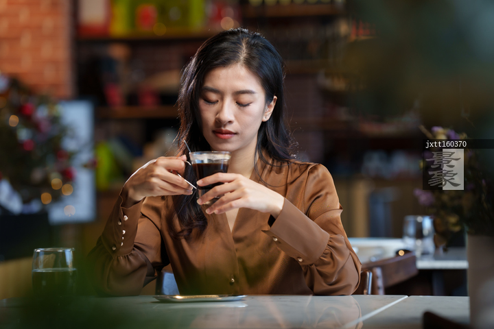 图片标题: 咖啡厅里的青年女人
