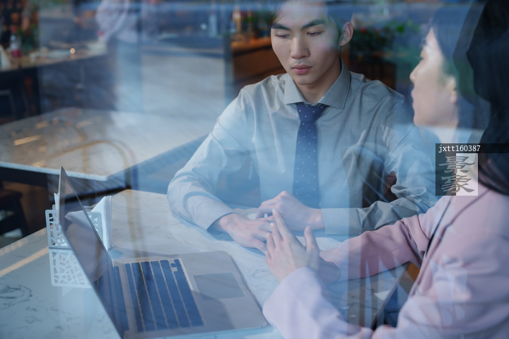 图片标题: 青年白领在餐厅里讨论工作