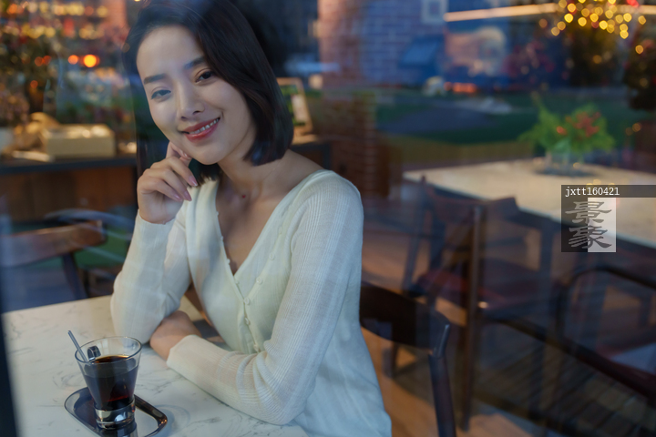 图片标题: 咖啡厅里的青年女人