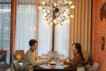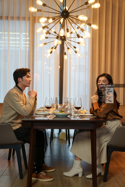 图片标题: 青年情侣在餐厅用餐