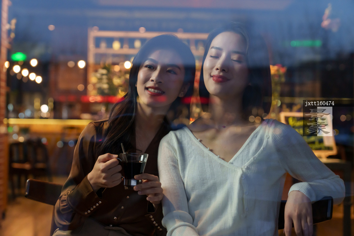 图片标题: 咖啡店里的快乐闺蜜
