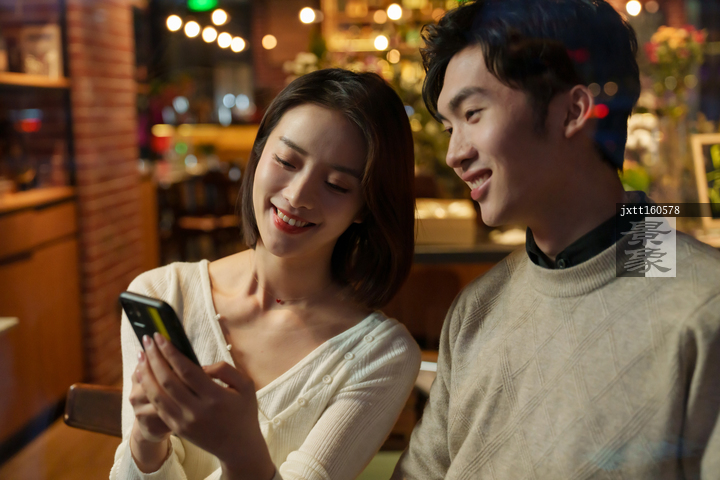 图片标题: 幸福情侣看手机