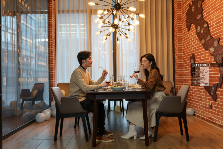 图片标题: 青年情侣在餐厅用餐