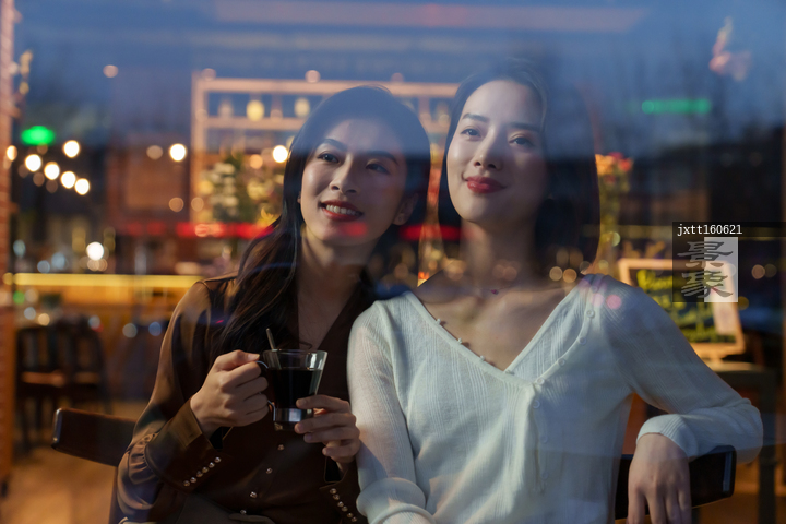 图片标题: 咖啡店里的快乐闺蜜