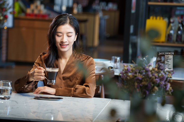 图片标题: 咖啡厅里的青年女人