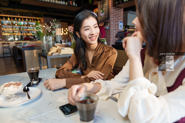 图片标题: 咖啡店里的快乐闺蜜