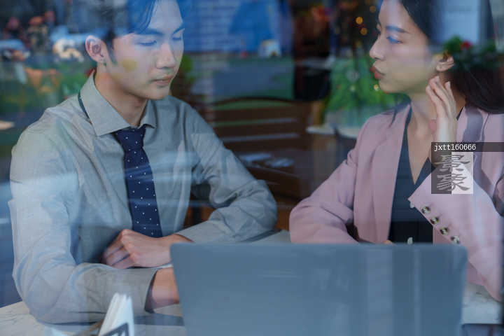 图片标题: 青年白领在餐厅里讨论工作
