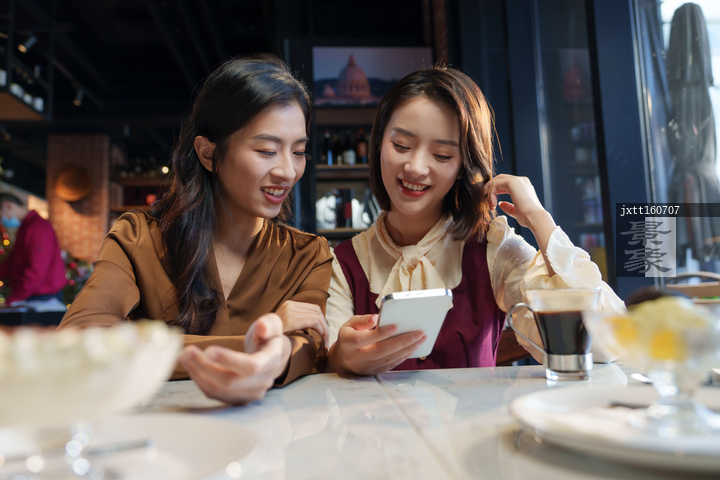 图片标题: 咖啡店里的快乐闺蜜