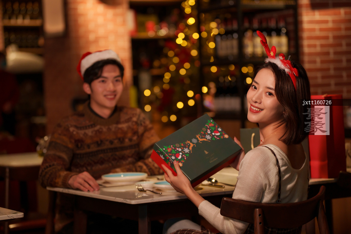 图片标题: 年轻男人给女朋友送圣诞礼物