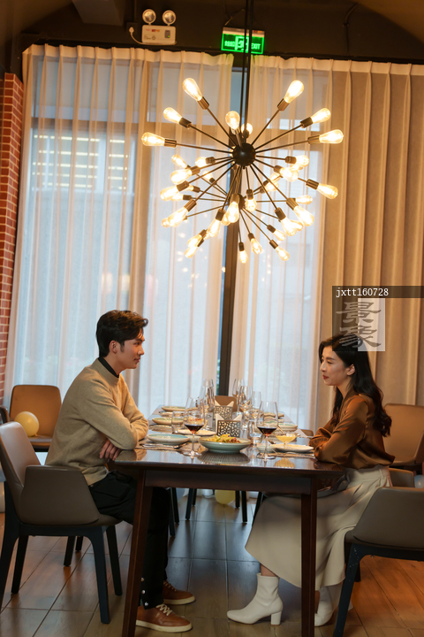 图片标题: 青年情侣在餐厅用餐