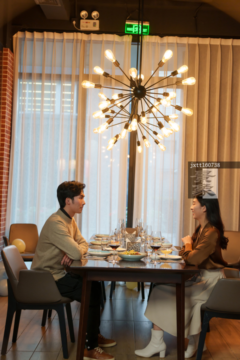 图片标题: 青年情侣在餐厅用餐