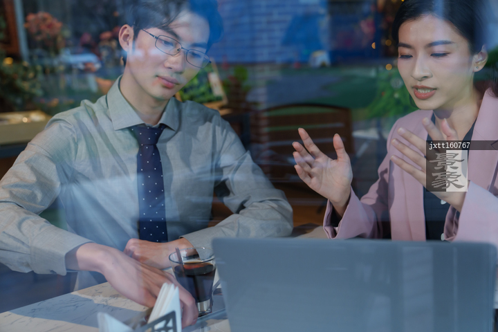 图片标题:     青年白领在餐厅里讨论工作