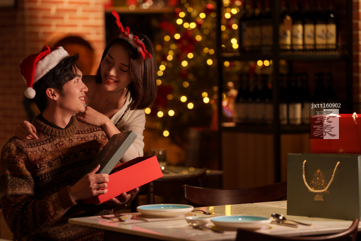 图片标题: 年轻男人给女朋友送圣诞礼物