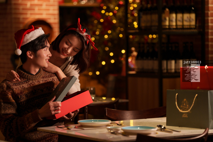 图片标题: 年轻男人给女朋友送圣诞礼物