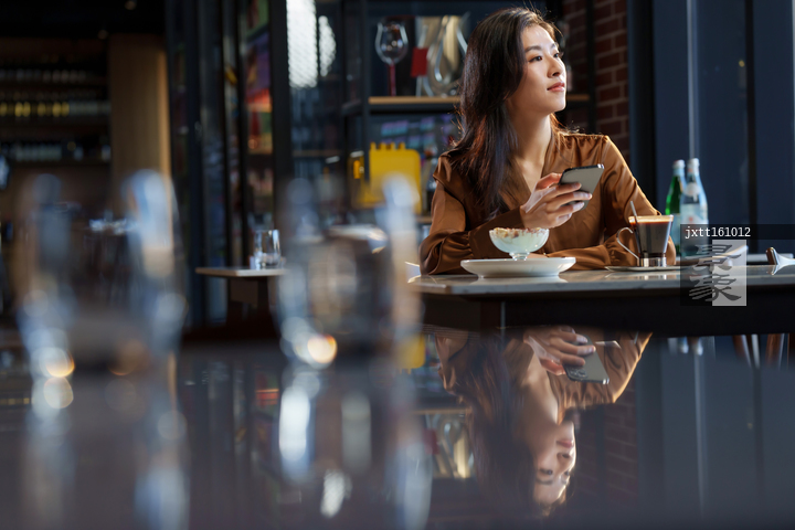 图片标题: 咖啡厅里的青年女人