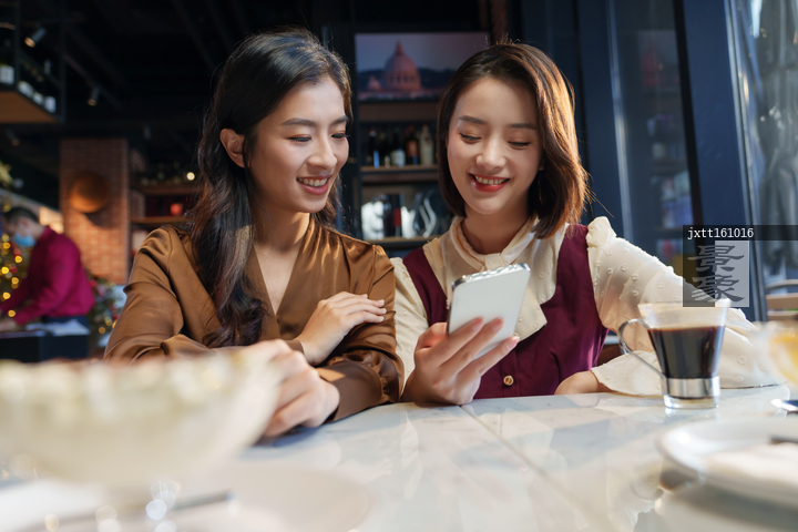 图片标题: 咖啡店里的快乐闺蜜