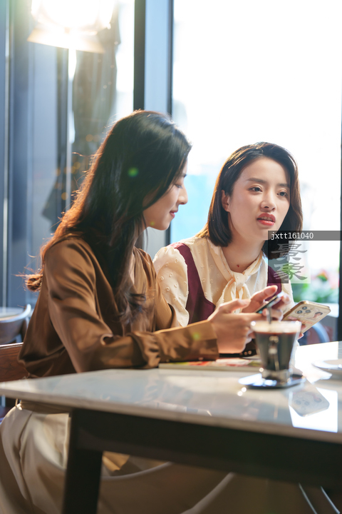 图片标题: 咖啡店里的快乐闺蜜