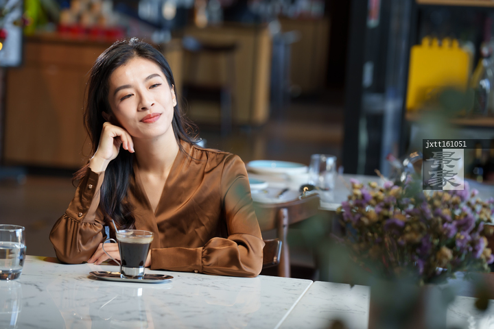图片标题: 咖啡厅里的青年女人