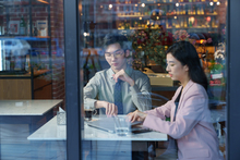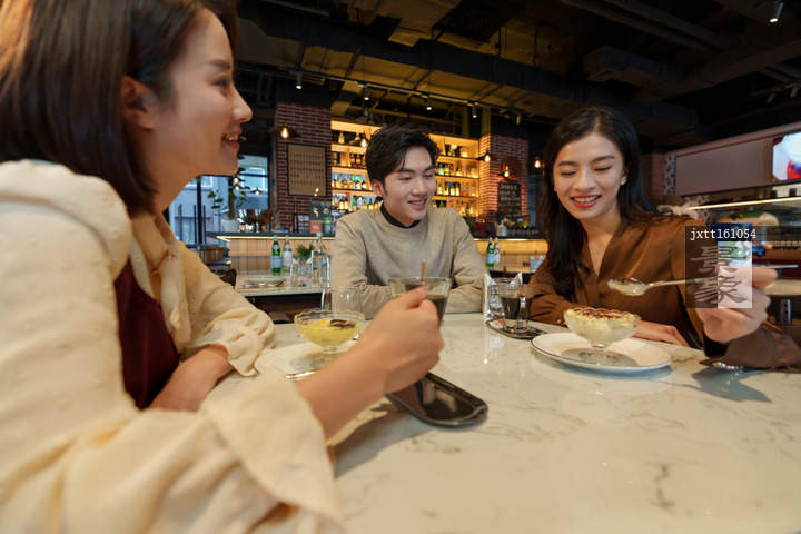 图片标题: 青年朋友在咖啡厅