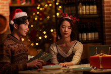 图片标题: 年轻男人给女朋友送圣诞礼物