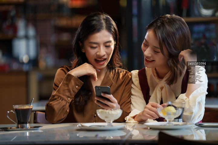 图片标题: 咖啡店里的快乐闺蜜