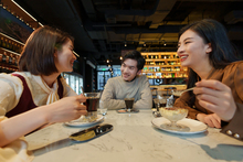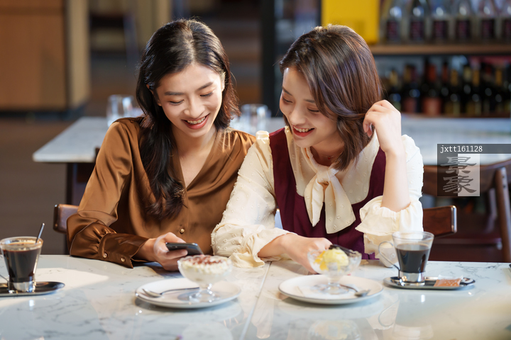 图片标题: 咖啡店里的快乐闺蜜