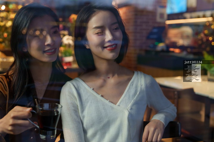 图片标题: 咖啡店里的快乐闺蜜