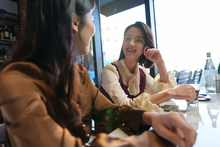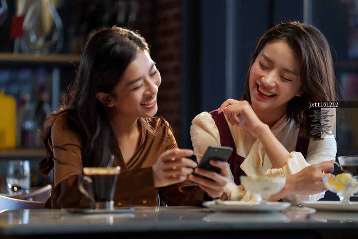 图片标题: 咖啡店里的快乐闺蜜