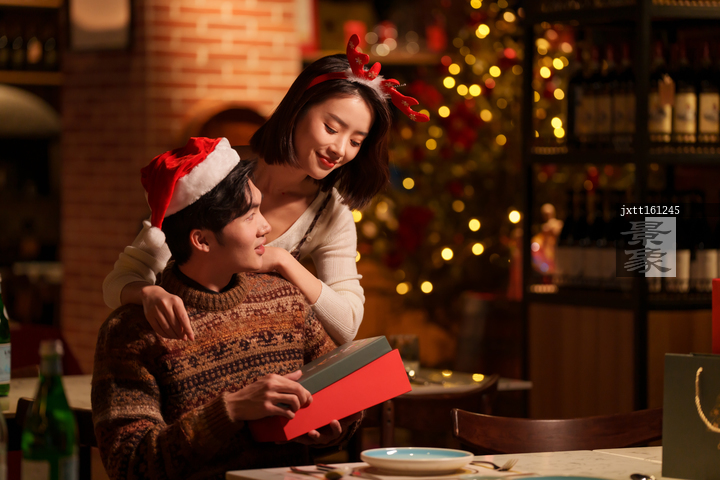 图片标题:     年轻男人给女朋友送圣诞礼物