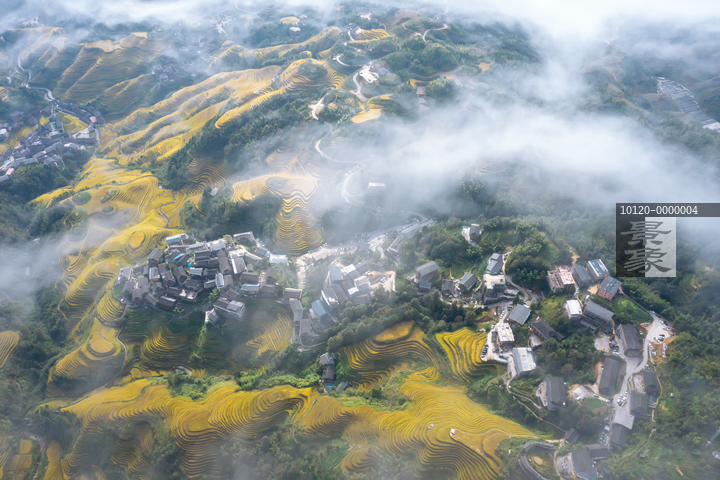 图片标题: 无人机鸟瞰广西龙脊梯田日景
