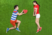 图片标题: 青年男女躺在草地上玩耍